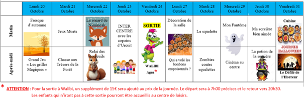PROGRAMME DES VACANCES D’AUTOMNE 2025