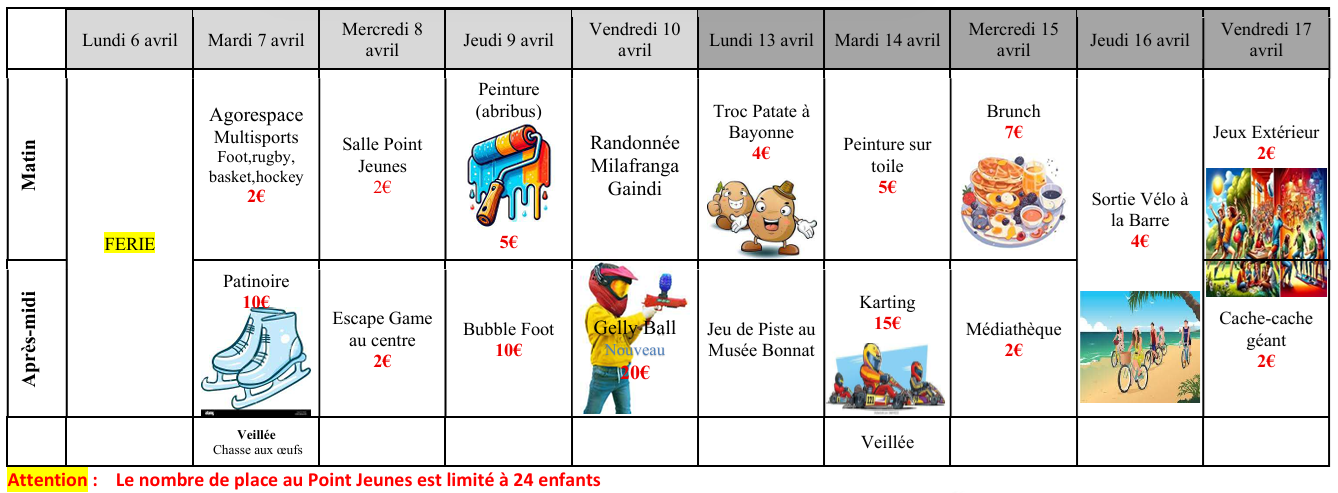 PROGRAMME DES VACANCES DE PRINTEMPS 2026